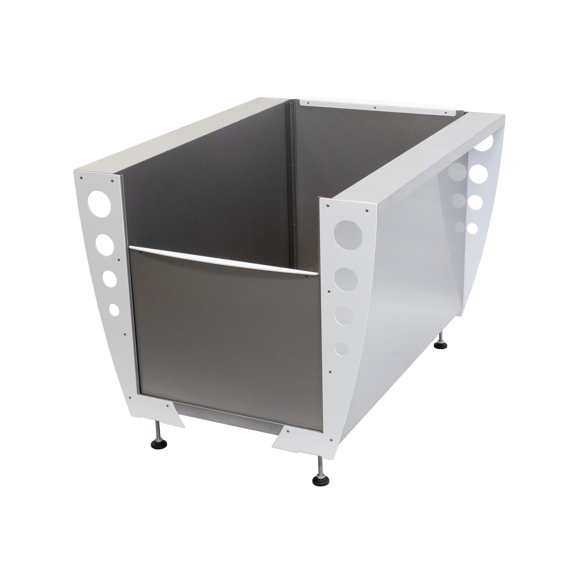 Für den Halter sorgen verstellbare Füße, eine rutschfeste Gummieinlegematte und das integrierte Ablaufventil für eine einfache, stabile und kraftsparende Handhabung.