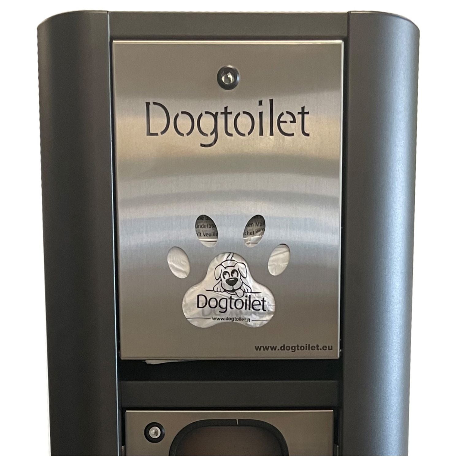 Dogtoilet PREMIUM, Dispenser sacchetti per cani con bidoncino e apertura frontale in acciaio lucidato INOX